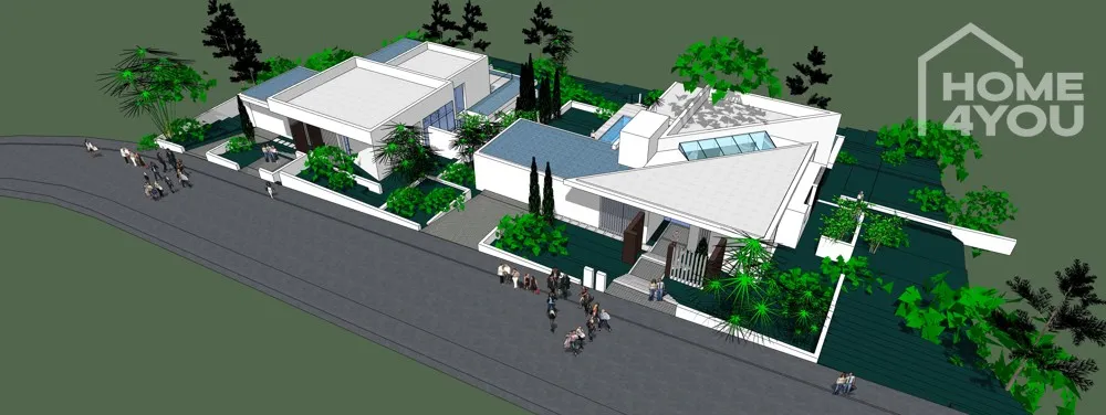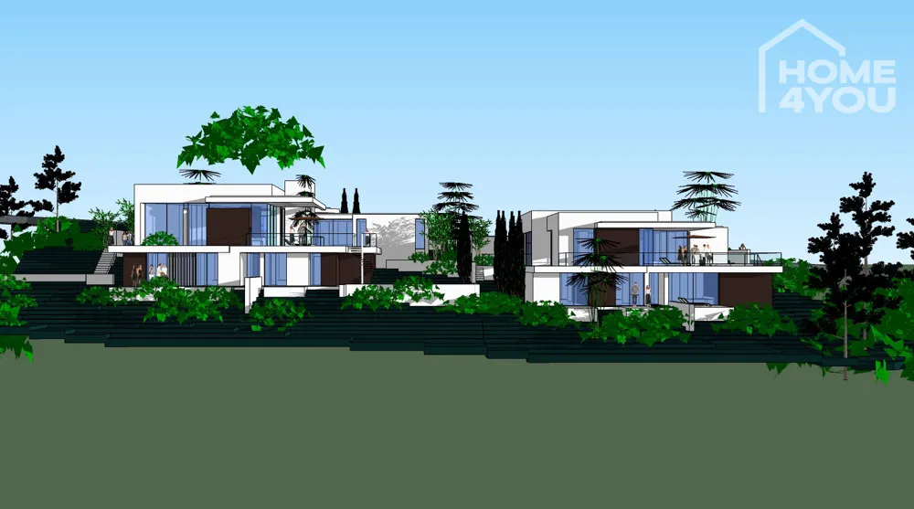 Hier kann Ihr Traumdomizil, eine Villa im Bauhausstil mit einer Gesamtfläche von 413 m2, errichtet werden.