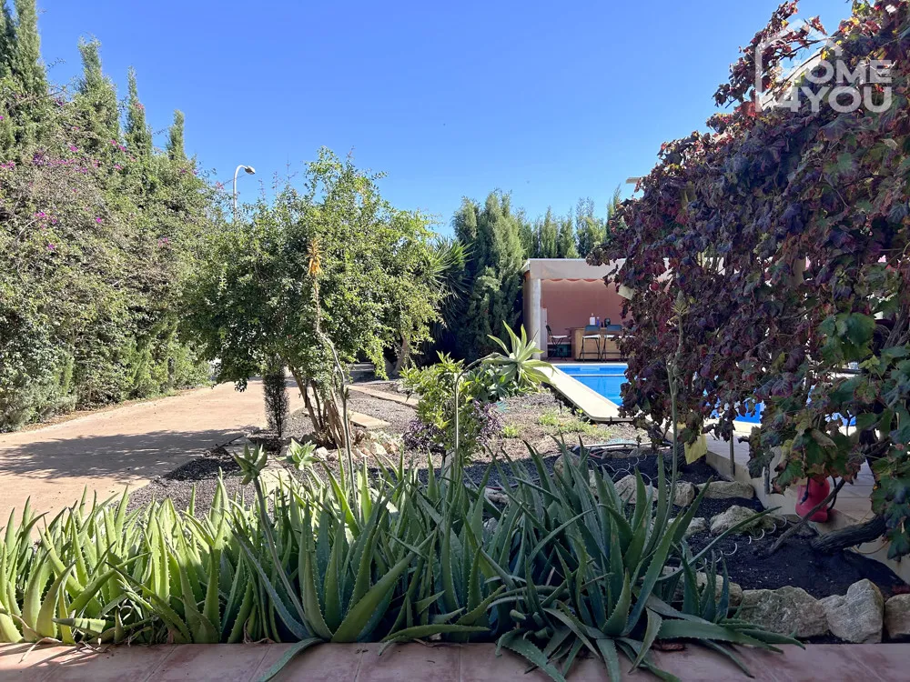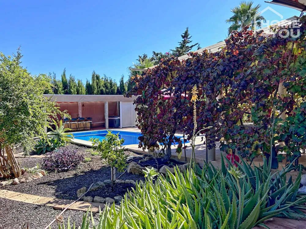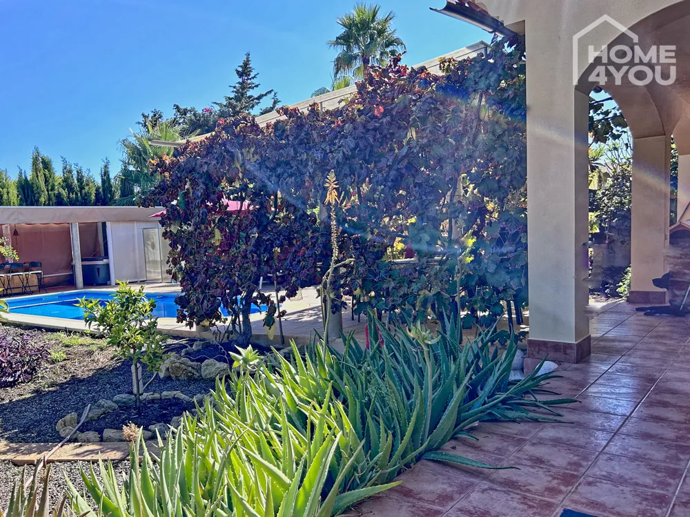 Der Garten wurde geschmackvoll und pflegeleicht gestaltet. Das Bewässerungssystem sorgt für ausreichend Wasser. Eine Schutzfolie und die Abdeckung der Beete mit Mandelschalen sorgen dafür, dass kein Unkraut durch kommz. Verscheidene Obstbäume wie Orange, Feigen, Nispero, Kumquat, Kaki, Granatapfel und Mandarinenbäume zieren den Garten. Genießen Sie Ihre freien Stunden unter der Sonne Mallorcas in dieser Ruheoase. Die Terrasse ist überdacht und von Weinreben umgeben.