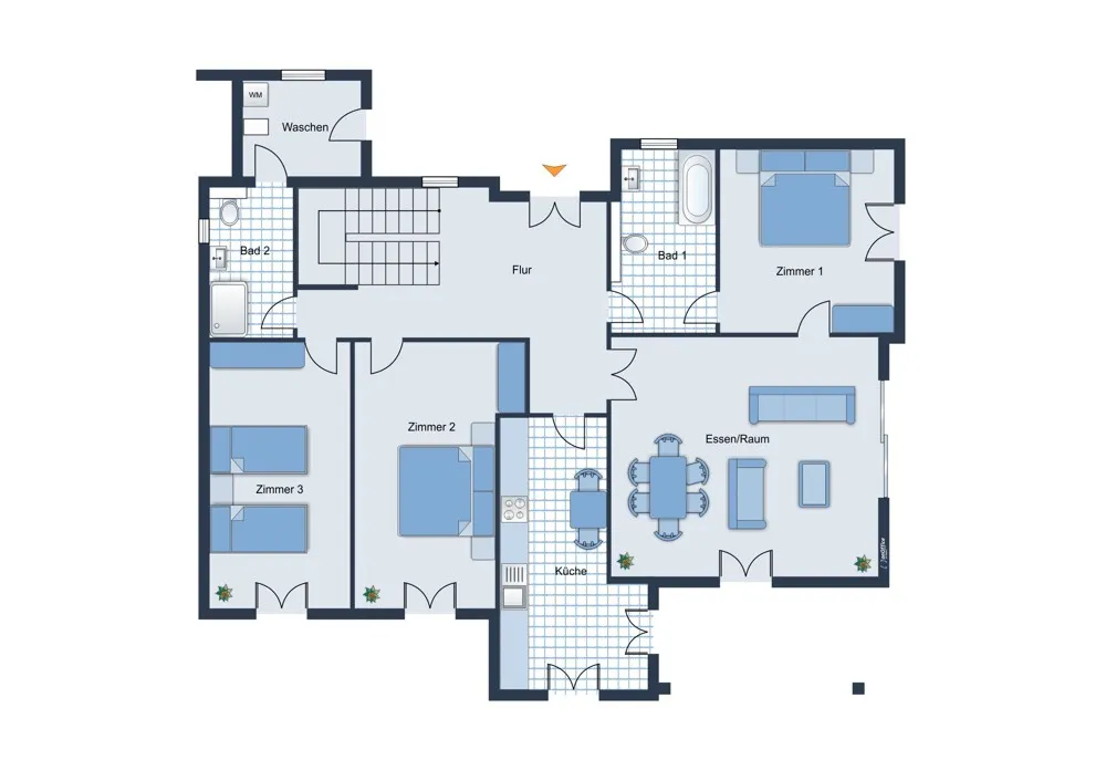 Hinweis: Illustrationen, Fotos & Musteransichten enthalten zur besseren Verdeutlichung Ausführungsdetails, Einrichtungsgegenstände und Ansichten, die in der finalen Ausführung zum Teil abweichen können, nicht im Angebot enthalten, oder Bestandteile einer separaten Verhandlung/Angebots sind.