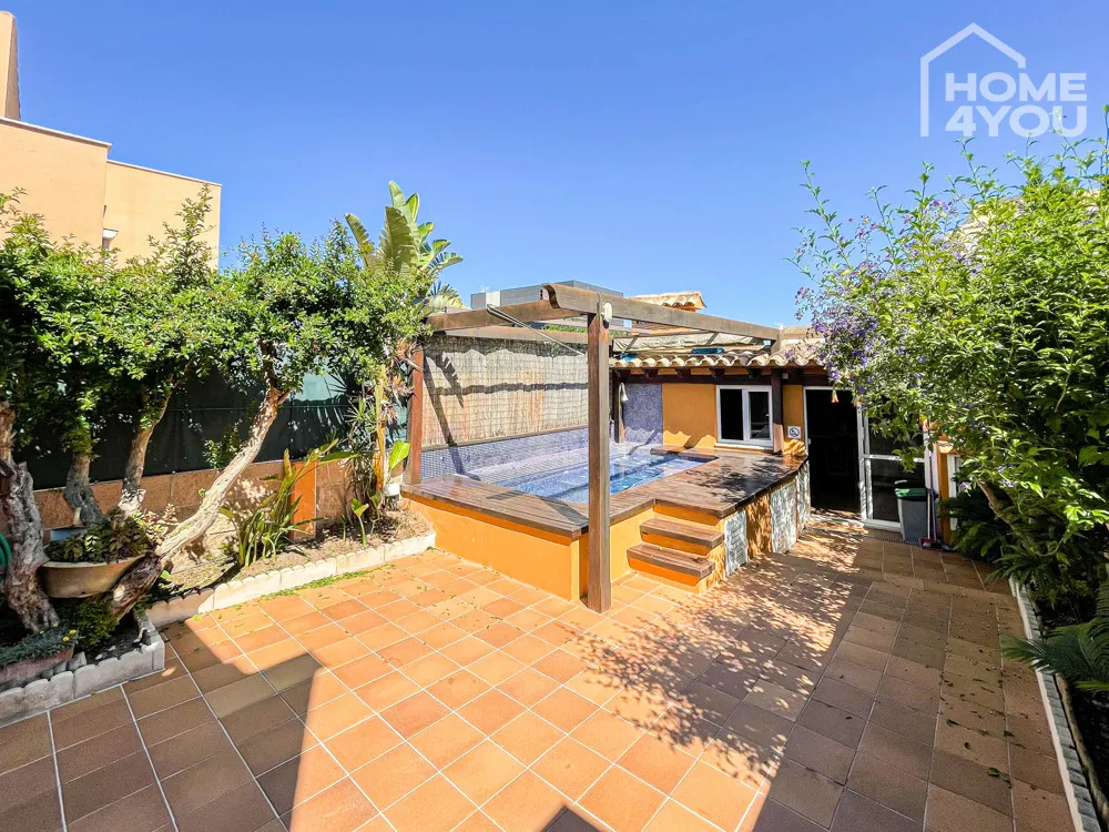 Dort befindet sich auch ein großer Jacuzzi-Pool mit Sonnenschutz, der dazu einlädt, viel Zeit im Freien zu verbringen und das angenehme mediterrane Klima zu genießen.