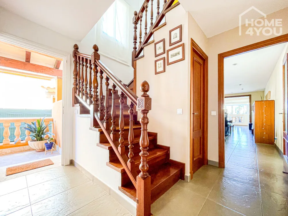 Vom Flur aus gelangen Sie über eine hochwertige Treppe mit mallorquinischem, massivem Holz-Geländer ins Obergeschoss, das mit 3 hellen und großen Schlafzimmer punktet, die alle mit einem warmen, in Holzoptik versehenen Vinylboden ausgelegt sind.