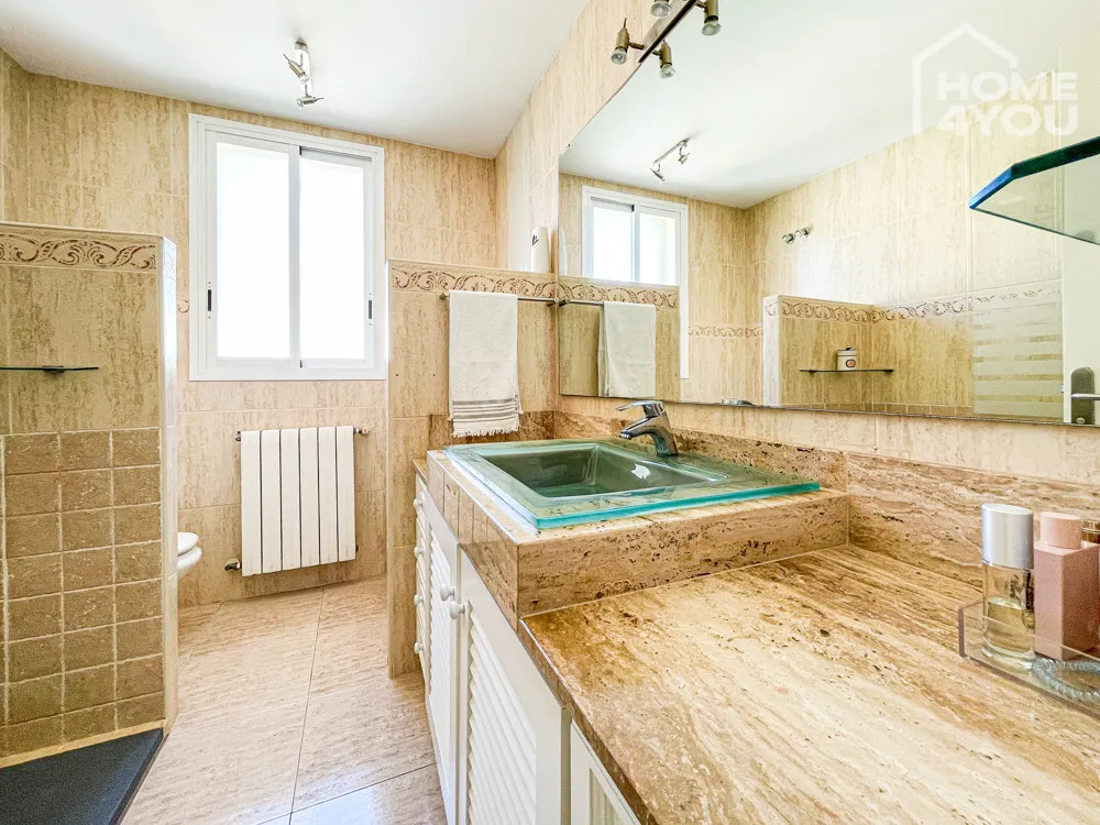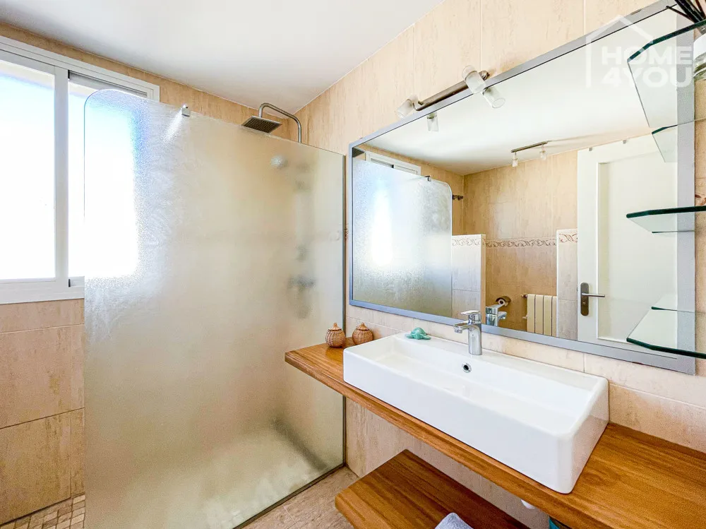 Ebenso finden Sie hier das zweite geräumige Duschbad. Die Duschbäder sind lichtdurchflutet und sehr geschmackvoll und mit schönen Details versehen, helle, zeitlose Fliesen runden diese Spa-Zonen ab.