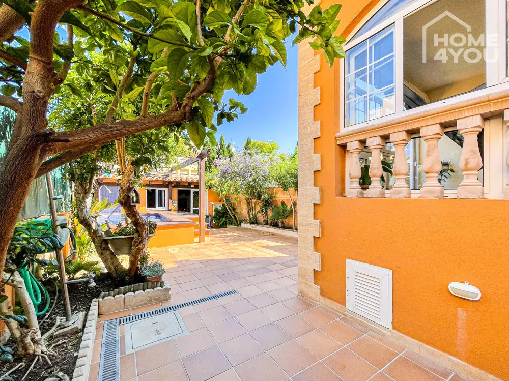 Durch einen schön angelegten Außenbereich, der mit mediterranen Bäumen und Sträuchern bewachsen ist, gelangen Sie über 3 separate Eingänge in dieses sehr helle und gepflegte Objekt.
