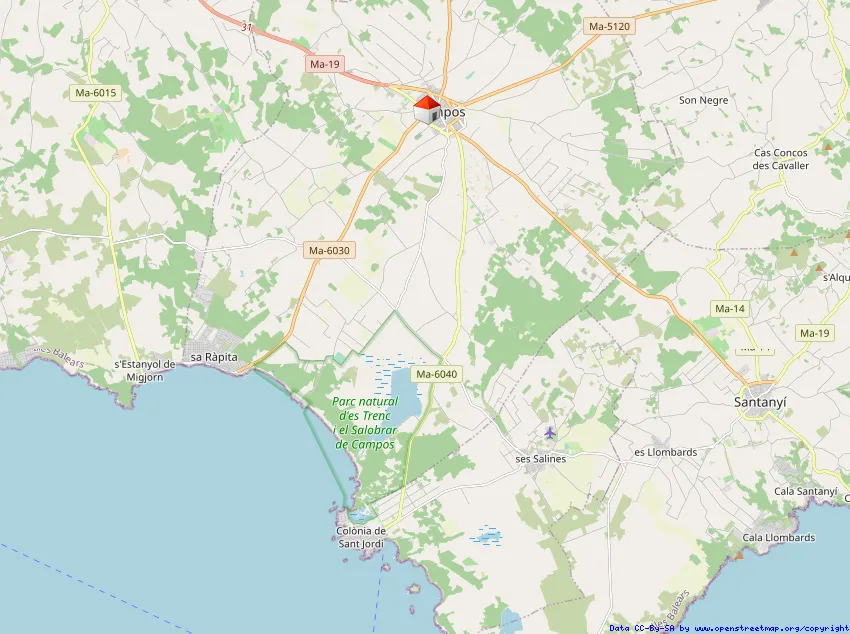 Campos ist eine belebte kleine Stadt an der Süd-Ostküste von Mallorca mit hohen Wertzuwächsen, unweit der Stadt Santanyi, Ses Salines und Colonia de Sant Jordi.