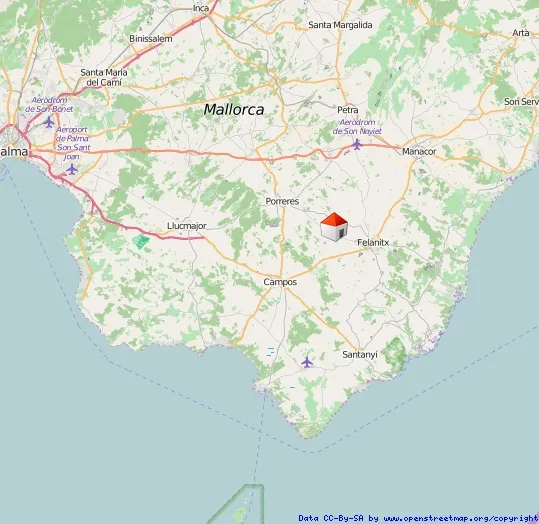 Vom Flughafen nach Felanitx sind es ca. 65 km und auf Grund der seit 2019 bis Campos bestehenden Autobahn und den dann sehr gut ausgebauten Straßen lediglich 40 bis 45 Minuten Fahrzeit.