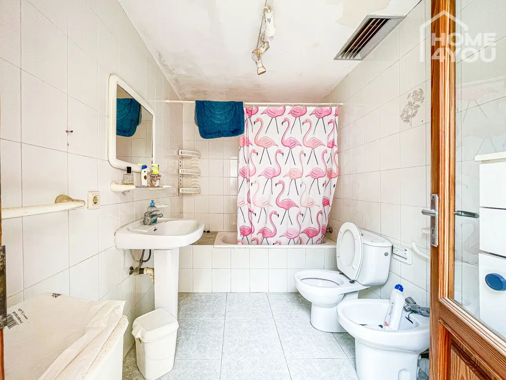 Sowohl über die komplett ausgestattete Küche als auch über das Wohnzimmer führt ein Ausgang in den großen Patio mit eigenem Brunnen und zu einem der zwei Badezimmer. Gleichermaßen gelangt man über den typisch mallorquinischen Innenhof zur Garage und zum zweiten Hausabschnitt.