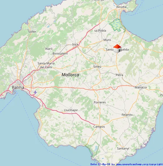 Die Gemeinde Santa Margalida liegt rund 45 Kilometer von der Inselhauptstadt Palma entfernt. Sie ist Teil der Region (Comarca) Plà de Mallorca oder Es Plà, der großen Ebene der Inselmitte.