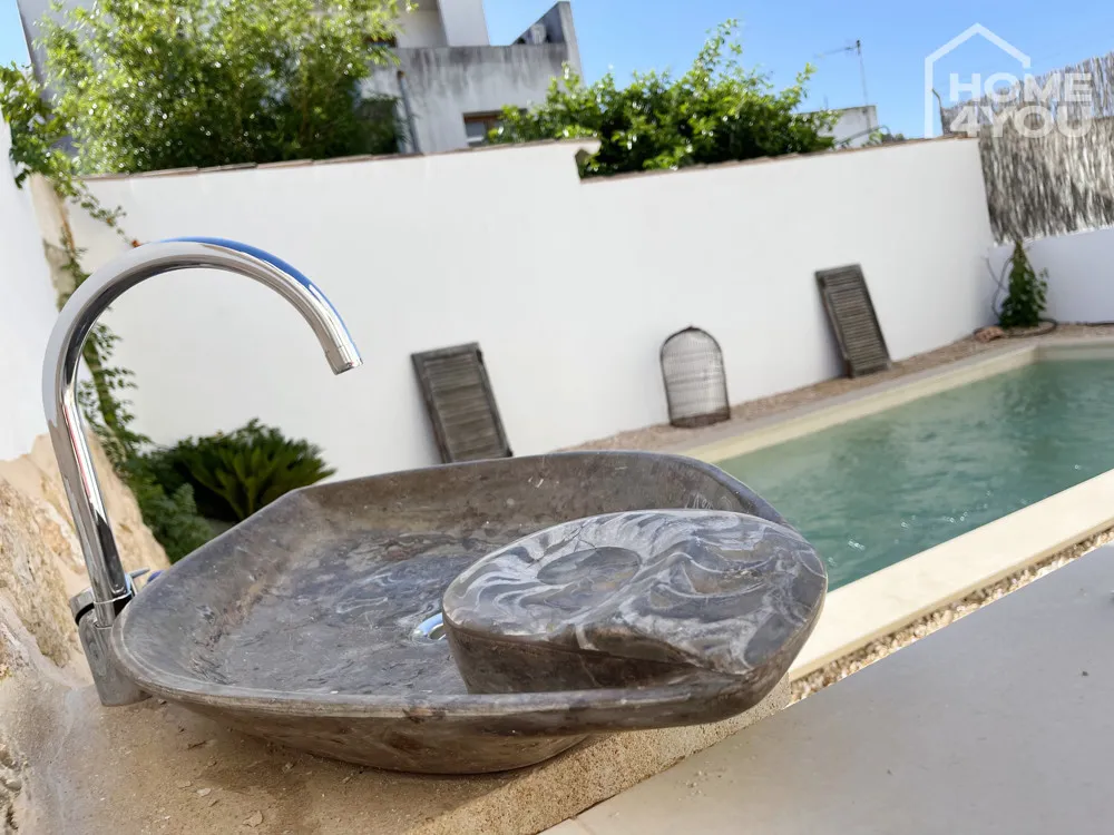 Im Garten befindet sich der große Pool, eine Außenküche und ein separater Waschraum.