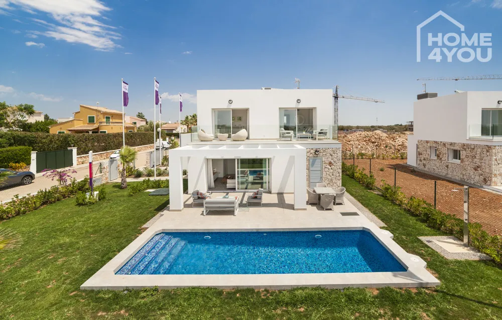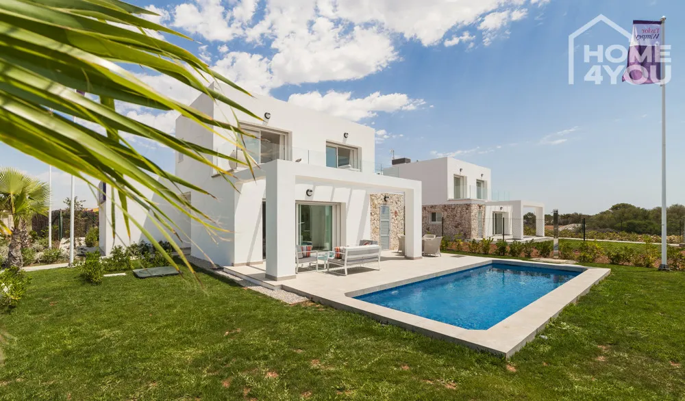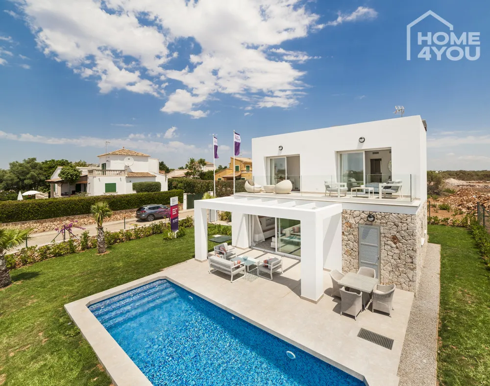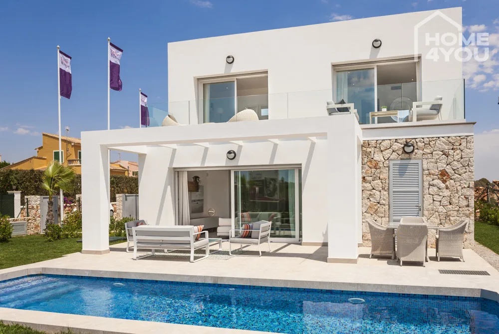Die modernen Einfamilienhäuser der Wohnsiedlung Las Villas de Dalt de Sa Rápita wurden in modernem & minimalistischem Design gestaltet. - Mediterrane Optik verbunden mit kühlem Ibiza-Style.