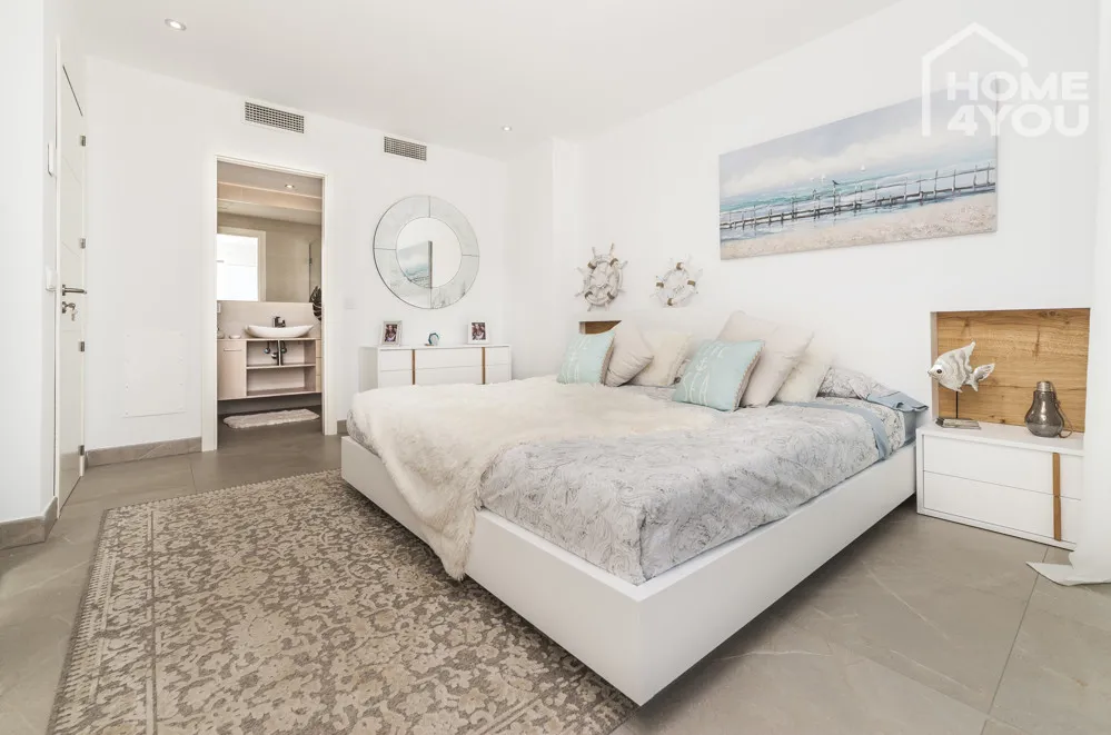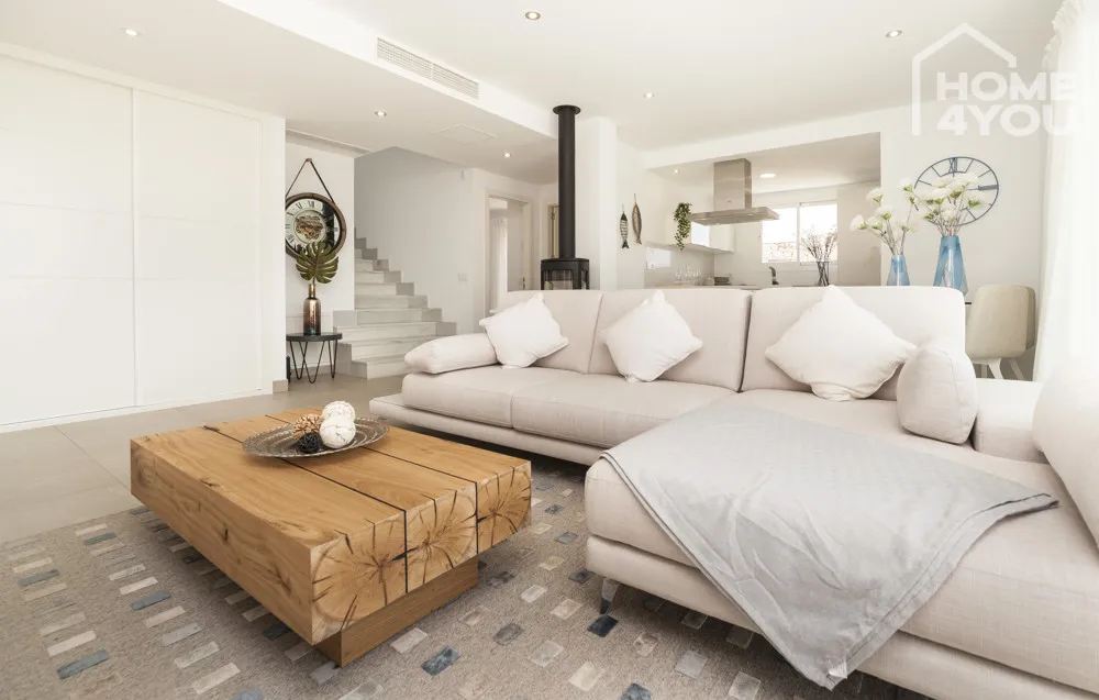 Die stylischen Häuser verfügen über 3 Doppelschlafzimmer und 3 Bäder, eine voll möblierte Küche, Waschküche, Wohn-Esszimmer mit Vorinstallation für einen Kamin, weitläufige Terrassen und einen Garten.