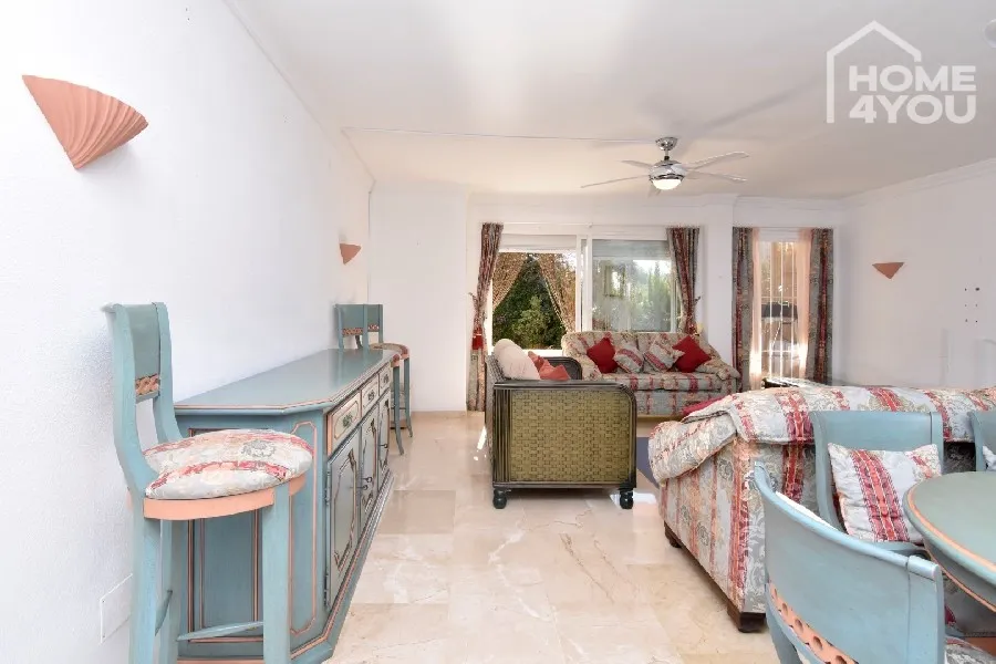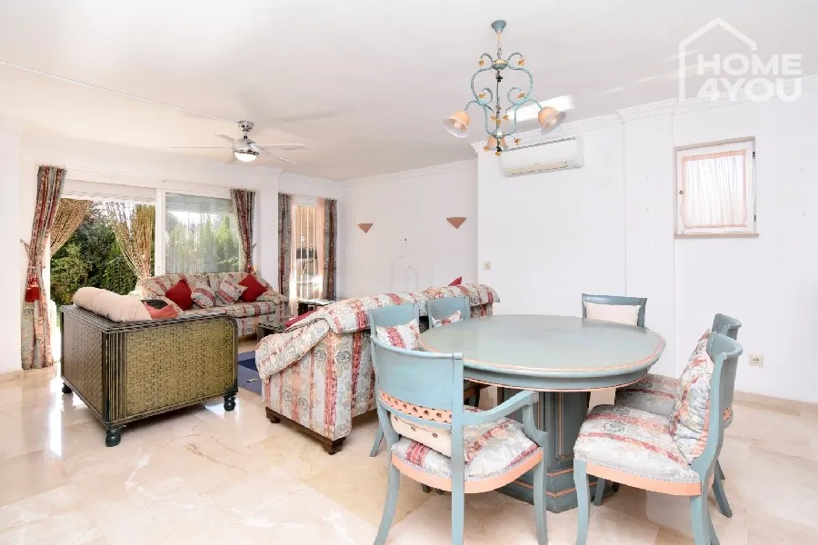 Die hochwertigen beigen Fliesen aus Marmor und das traditionelle Mobiliar komplettieren dieses malerische Bild. Ein Teil der Einrichtung kann auf Wunsch optional übernommen werden.
