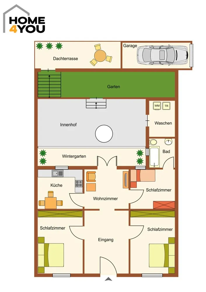 Einzigartiges Ambiente & mediterraner Charme, 125 qm, 3 SZ, Innenhof, Garten, Dachterrasse, Garage