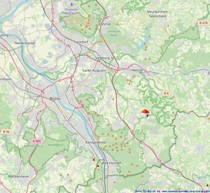 Trotz der ruhigen Lage am Waldrand ist der Ort Oberpleis in rund drei Kilometern erreichbar. Dort befinden sich sämtliche Einrichtungen des täglichen Bedarfs, darunter Schulen, Einkaufsmöglichkeiten, medizinische Versorgung, Gastronomie, Sportangebote sowie ein Freibad. Eine Busanbindung besteht sowohl in Richtung Oberpleis als auch nach Hennef mit weiterführendem Bahnanschluss in Richtung Siegburg, Bonn und Köln. Die Anschlussstelle der Autobahn A3 ist in etwa fünf Fahrminuten erreichbar.