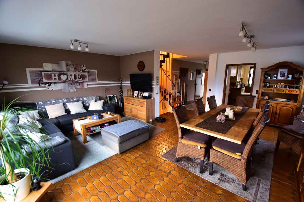 Diese im Jahr 1983 massiv erbaute Doppelhaushälfte bietet auf einer Wohnfläche von ca. 130 m² den idealen Raum für eine Familie, die Wert auf eine solide Bausubstanz und eine durchdachte Aufteilung legt. Mit insgesamt fünf Zimmern lässt das Haus viel Spielraum für individuelle Wohnträume. Das Herzstück des Hauses ist der helle Wohnbereich, der nicht nur familiäre Gemütlichkeit ausstrahlt, sondern auch den mit Weitblick über den Ort