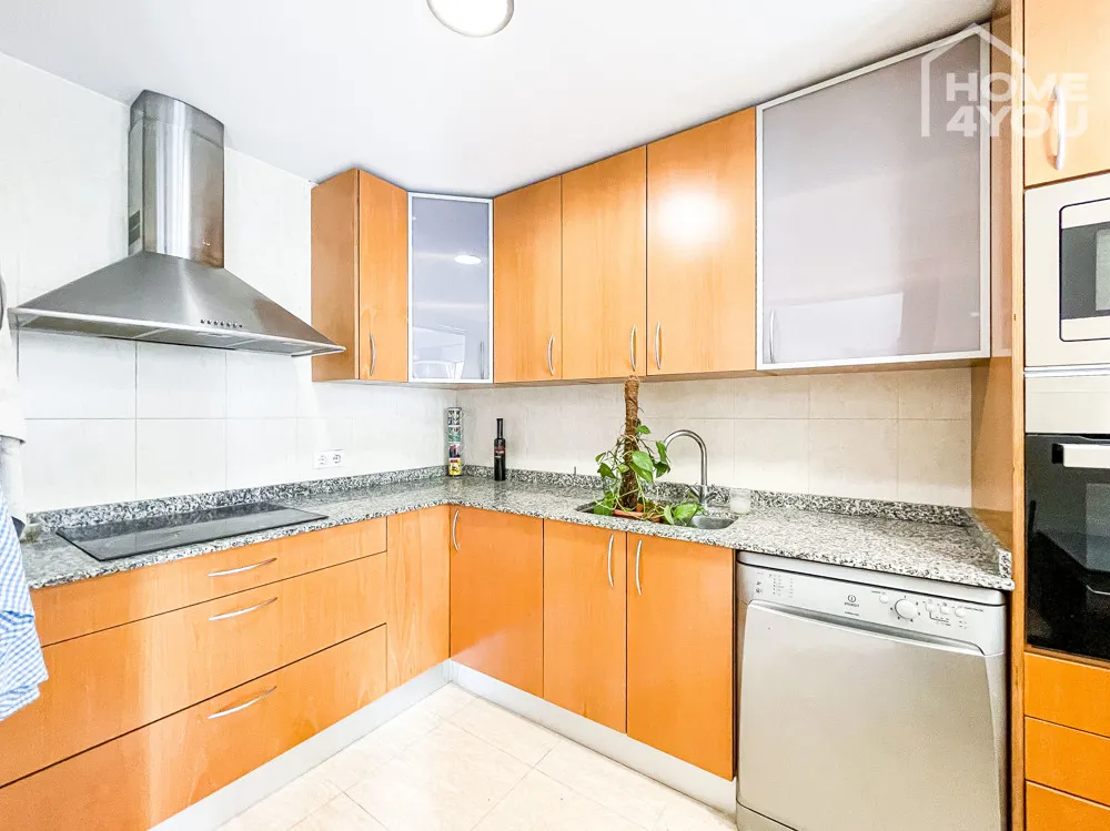 Die großzügige, moderne Küche grenzt direkt an den Essbereich und bietet Ihnen bequeme kurze Wege. Die Küchenzeile ist in moderner Holzoptik, mit einem klaren Design und bietet viel Platz. Die Einbaugeräte passen sich in ihrem Silbergrau hervorragend der geschmackvollen Küche an, in dem auch ein kleiner Frühstückstisch sein Plätzchen findet. Hier wird jeder Morgen ein perfekter Start in den Tag.