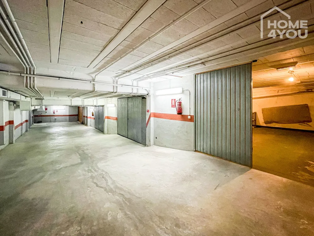 Im Untergeschoss befindet sich eine private, abschließbare Tiefgarage (für 2 Autos u. Motorrad) ein HWR für Waschmaschine, Trockner und genügend Stauraum, von hier gelangen Sie auch direkt und trockenen Fußes, über eine Wendeltreppe ins Haus.