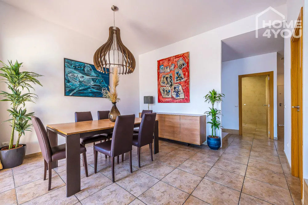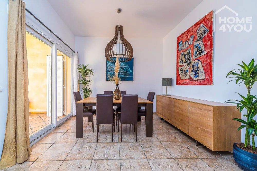 Dieses Haus besticht durch seine Helligkeit in der ersten Ebene, so wie durch die warmen erdfarbenen Steinfliesen.