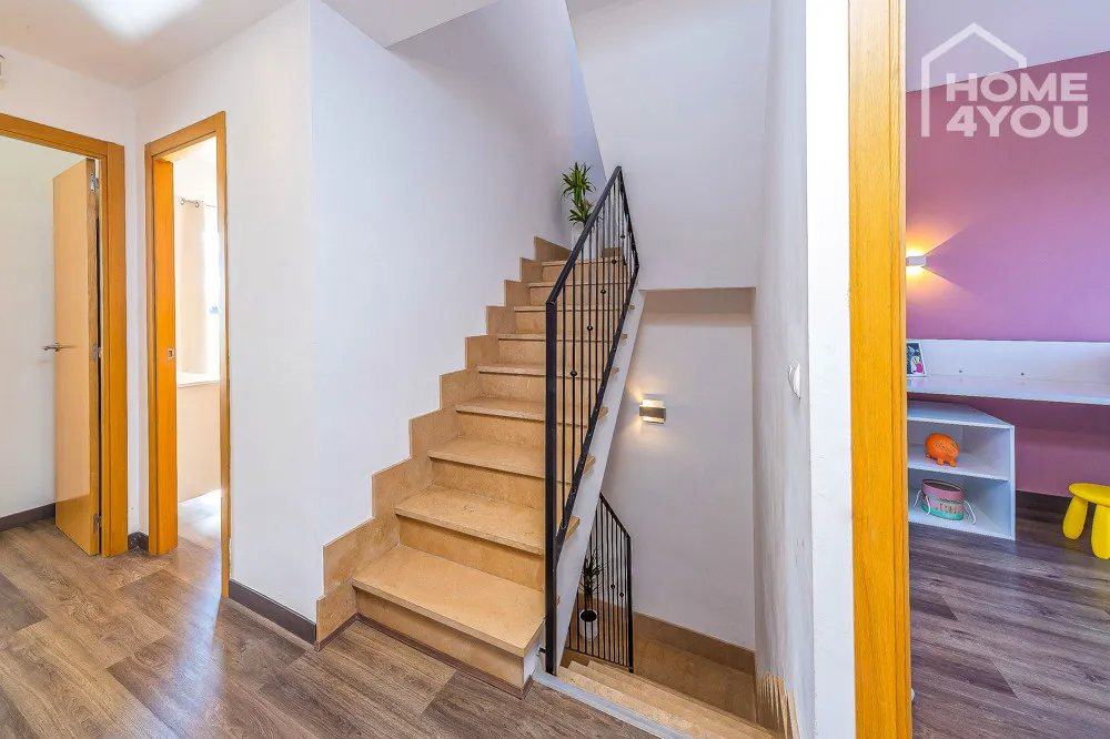Über das helle Treppenhaus mit massivem Steinboden gelangt man in das Obergeschoss, hier befinden sich 4 großzügige Schlafzimmer mit gemauerten Einbauschränken.