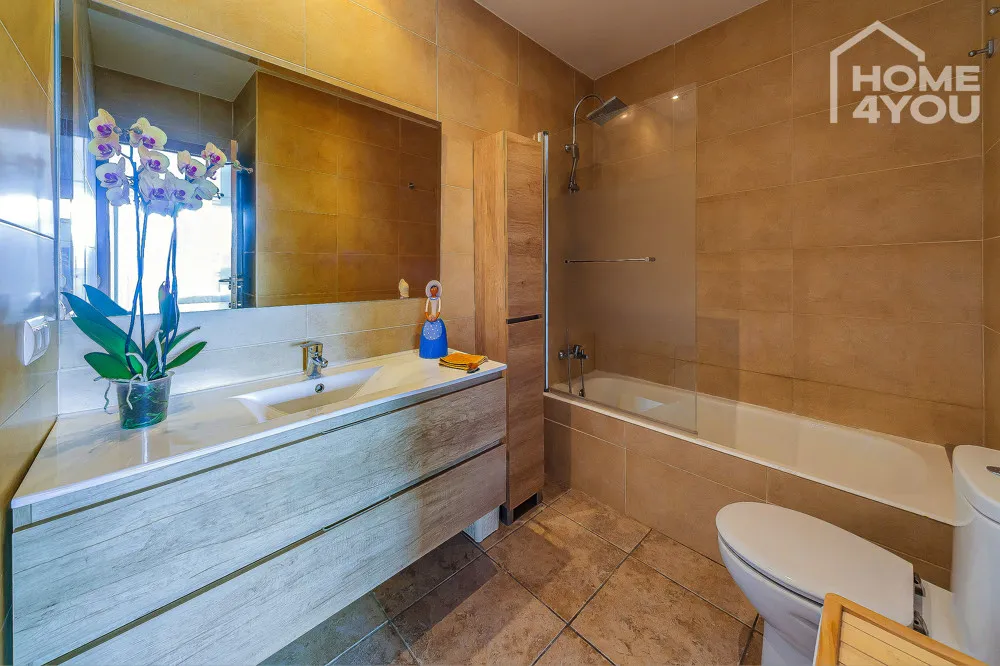 Das Master-Schlafzimmer umfasst zusätzlich ein praktisches Ankleidezimmer mit Schuhschrank und ein Bad en suite. Hervorzuheben sind die moderne Einrichtung, eine Badewanne mit Dusch- Glasabtrennung, die Rainshower-Dusche und der große Spiegel, der das Badezimmer noch größer erscheinen lässt. Ein weiteres modernes Badezimmer rundet diese Ebene ab und bietet eine weitere Spa Oase.