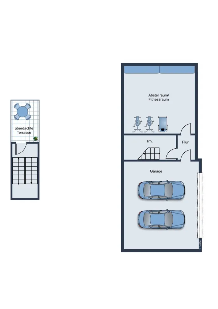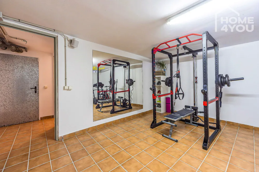 Im Untergeschoss finden sie eine großzügige Garage mit Platz für zwei Autos, viel Stauraum und einem pflegeleichten Stempelbetonboden. Von hieraus gelangen sie bequem und trockenen Fußes ins Erdgeschoss und durch einen Ausgang auch in den herrlichen Außenbereich. Für ihre Gesundheit und sportliche Betätigung gibt es auch noch einen großzügigen Fitnessraum und einen Heizungs- und Technikraum mit aerothermischem System und eine Enthärtungsanlage, die enthärtetes Wasser für das gesamte Objekt bietet, was seidenweiches Wasser und keine Kalkflecken verspricht.