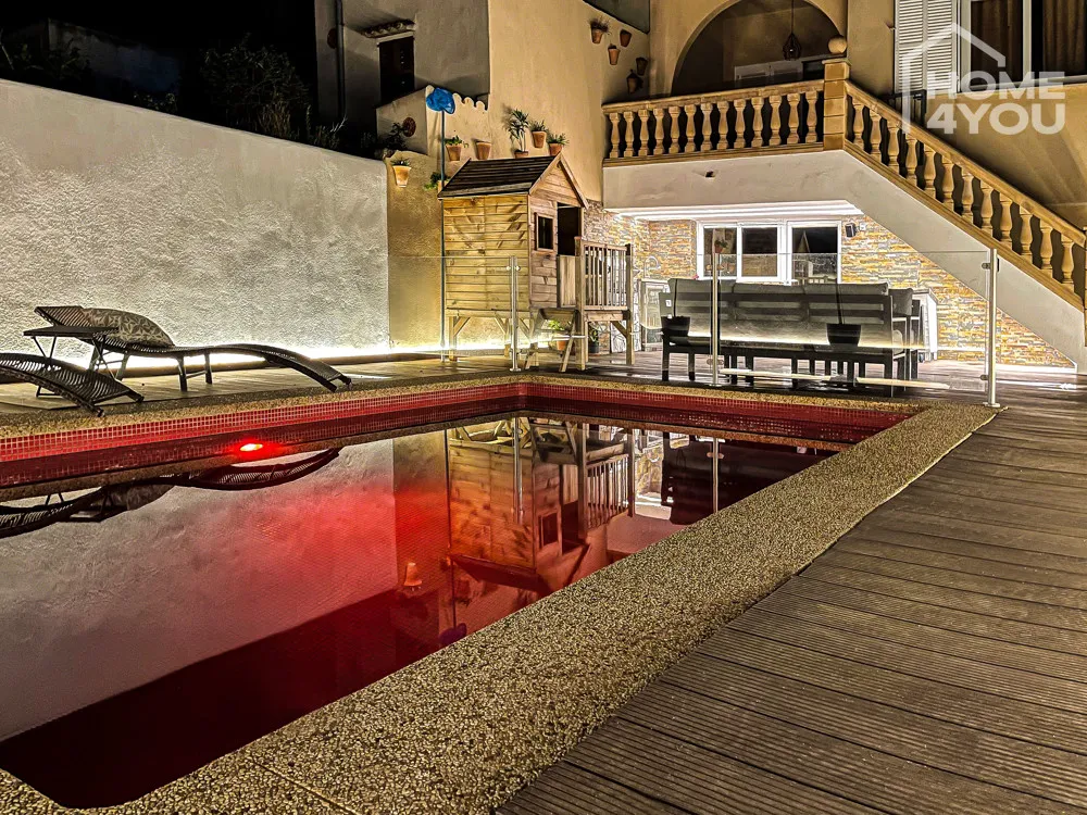 Das Highlight dieses Pools sind die leuchtenten Farben, die ein großartiges Ambiente am Abend zaubern.
