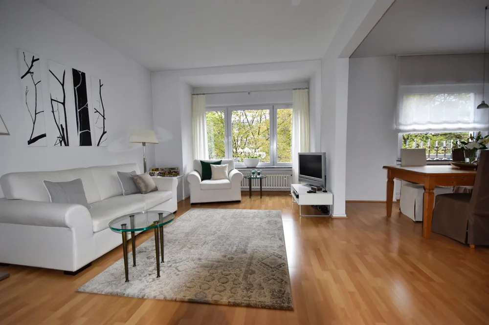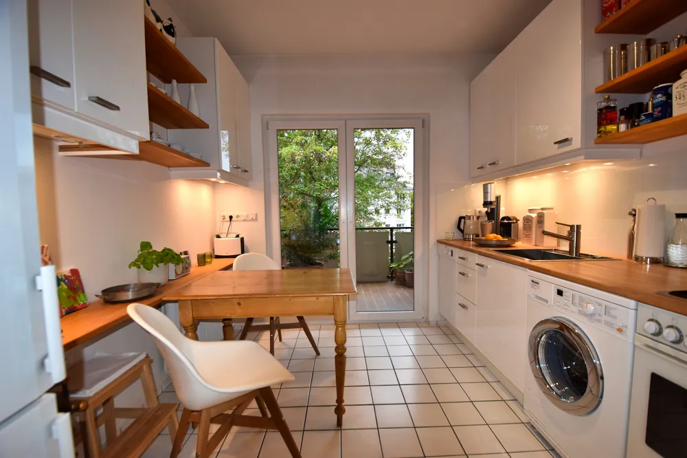 Die Wohnung befindet sich in einem sehr guten und top gepflegten Zustand. Die genauen Ausstattungsdetails entnehmen Sie bitte zunächst den beigefügten Bildern. Eine Besonderheit dieser schönen Wohnung wollen wir Ihnen nicht vorenthalten: Aus allen Fenstern der Wohnung genießen Sie einen tollen Blick ins Grüne. Nach vorne raus blicken Sie in einem kleinen, grünen Park und nach hinten raus in die umliegenden Gärten inkl. altem Baumbestand. Allein dies ist für die Kölner Innenstadt nahezu einzigartig.