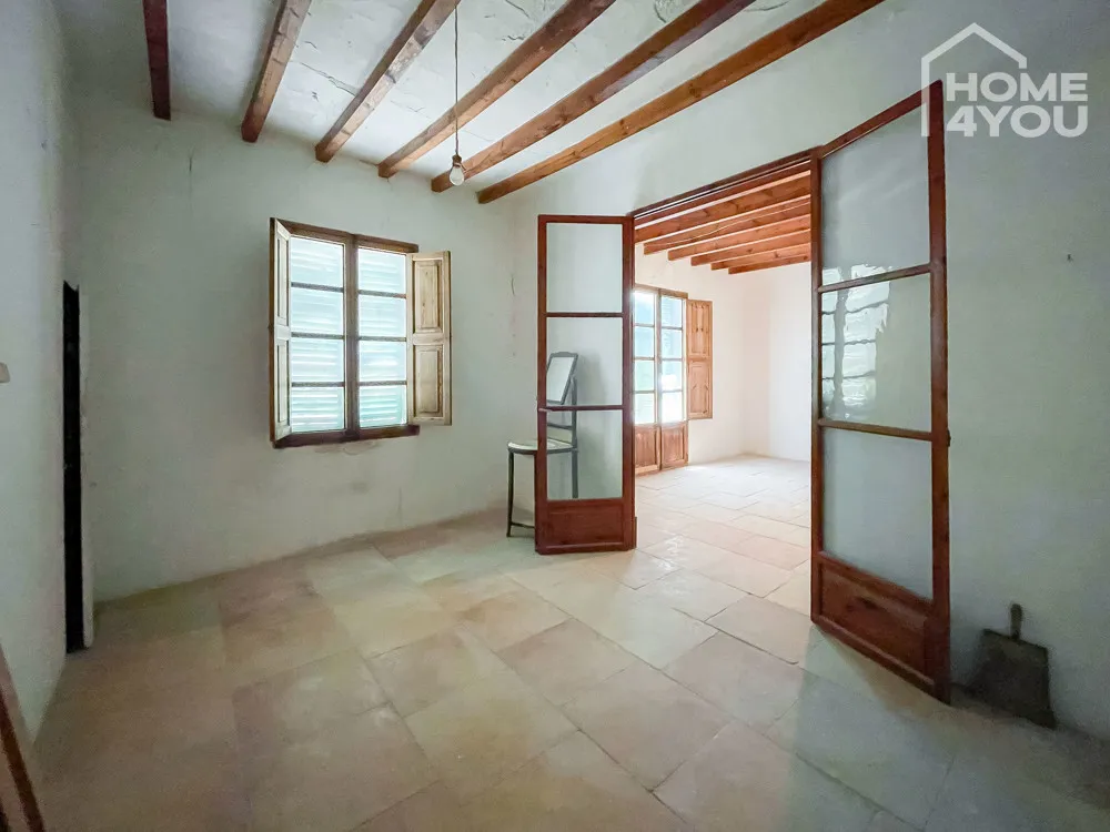 Auf der linken Seite befinden sich zwei große Schlafzimmer. Im ganzen Gebäude findet man typische Merkmale eines mallorquinischen Hauses mit hohen Decken, Stuckbögen, sichtbaren Balken, hydraulischen Fliesen und Zimmermannsarbeiten aus dem 19. Jahrhundert.
