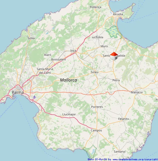 Es liegt im Herzen des ruhigen Dörfchens Santa Margalida, Nähe des Zentrums und nur etwa 9 km vom preisgekrönten Traumstrand „Playa de Muro“ mit Karibikfeeling entfernt.