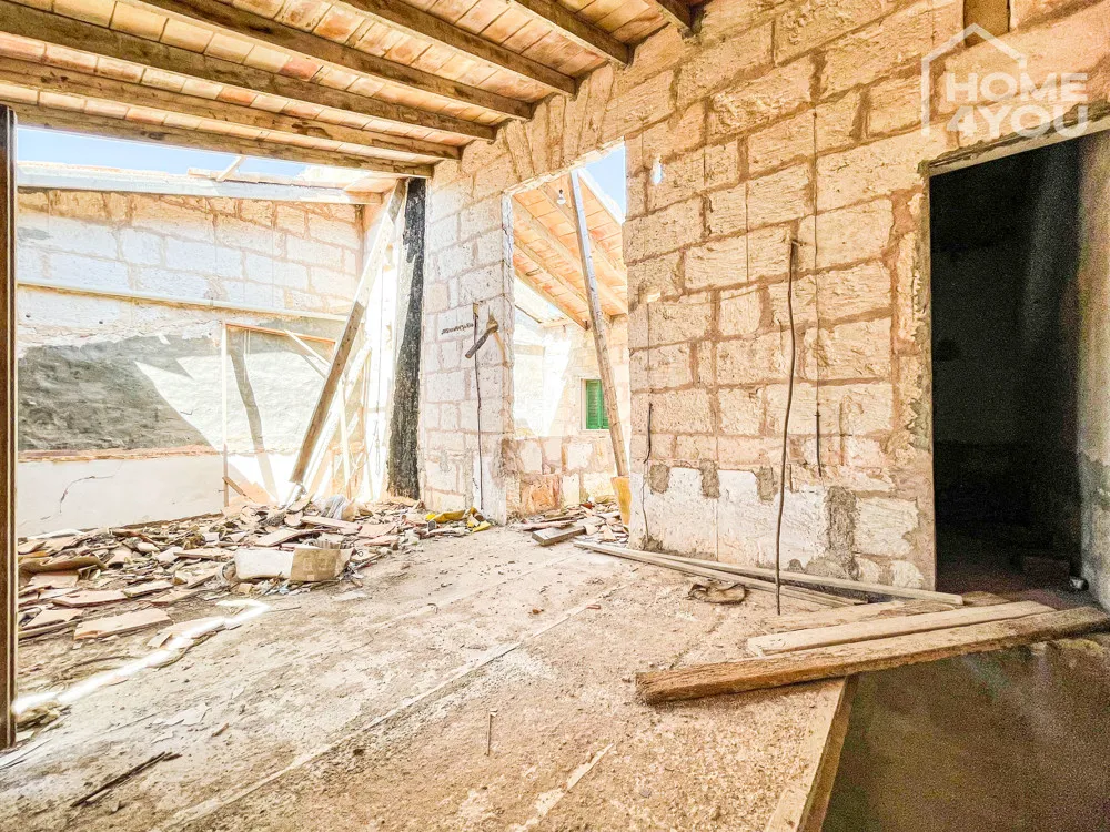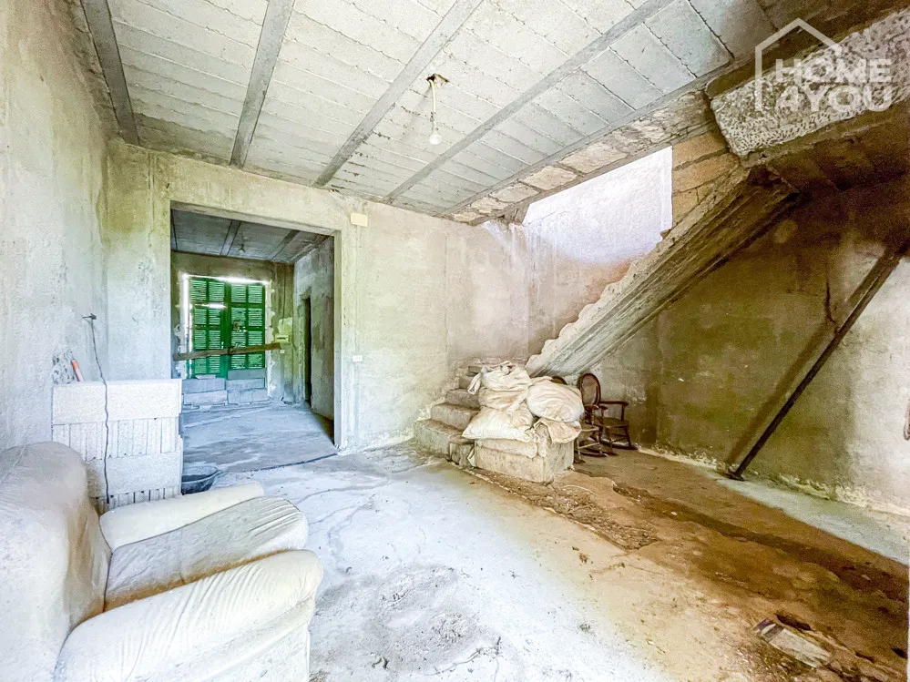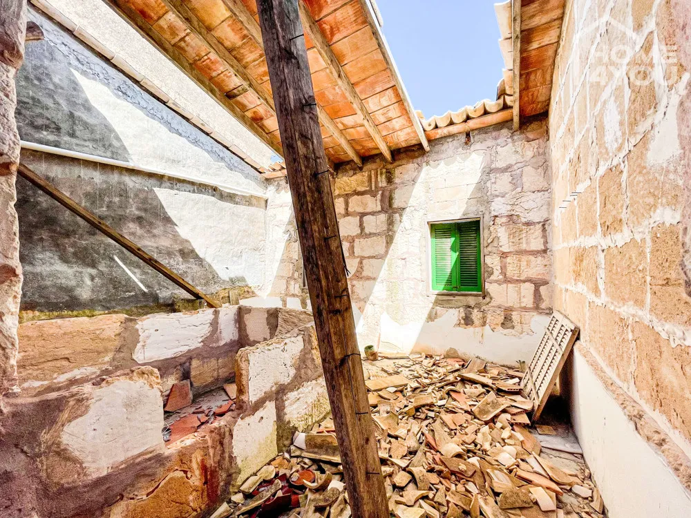 Das historische Stadthaus in Santa Margalida benötigt zwar eine vollständige Sanierung, aber die alten Steinmauern und die zentrale Lage machen es zu einem Top-Investitionsobjekt mit mediterranen Details.