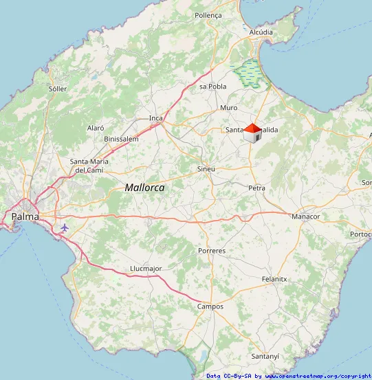 Die Gemeinde Santa Margalida liegt rund 45 Kilometer von der Inselhauptstadt Palma entfernt. Sie ist Teil der Region (Comarca) Plà de Mallorca oder Es Plà, der großen Ebene der Inselmitte.