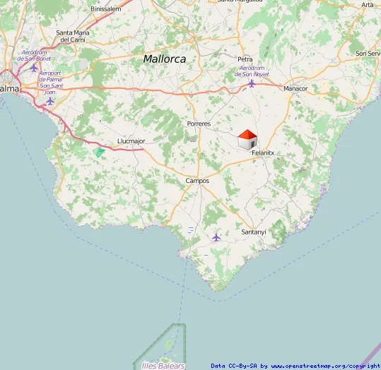 Vom Flughafen nach Felanitx sind es ca. 65 km und auf Grund der seit 2020 bis Campos bestehenden Autobahn und den dann sehr gut ausgebauten Straßen lediglich 40 bis 45 Minuten Fahrzeit.