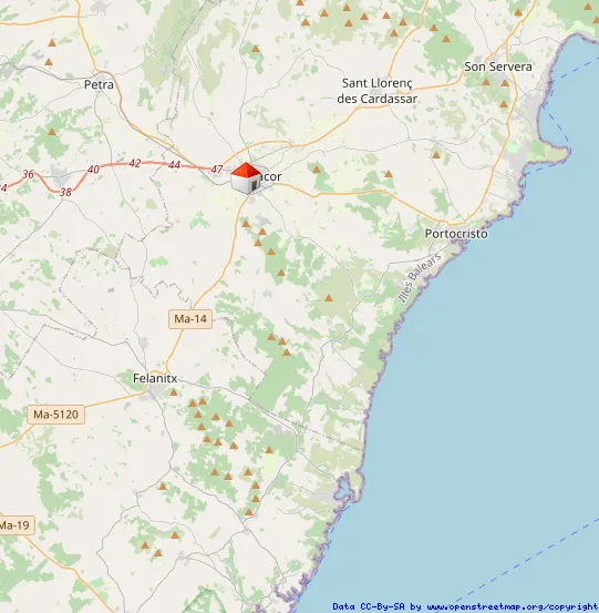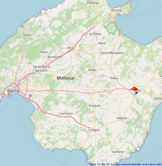 Vom Flughafen nach Manacor sind es ca. 50 km und auf Grund der bestehenden Autobahn und den dann sehr gut ausgebauten Straßen lediglich 35 bis 40 Minuten Fahrzeit.