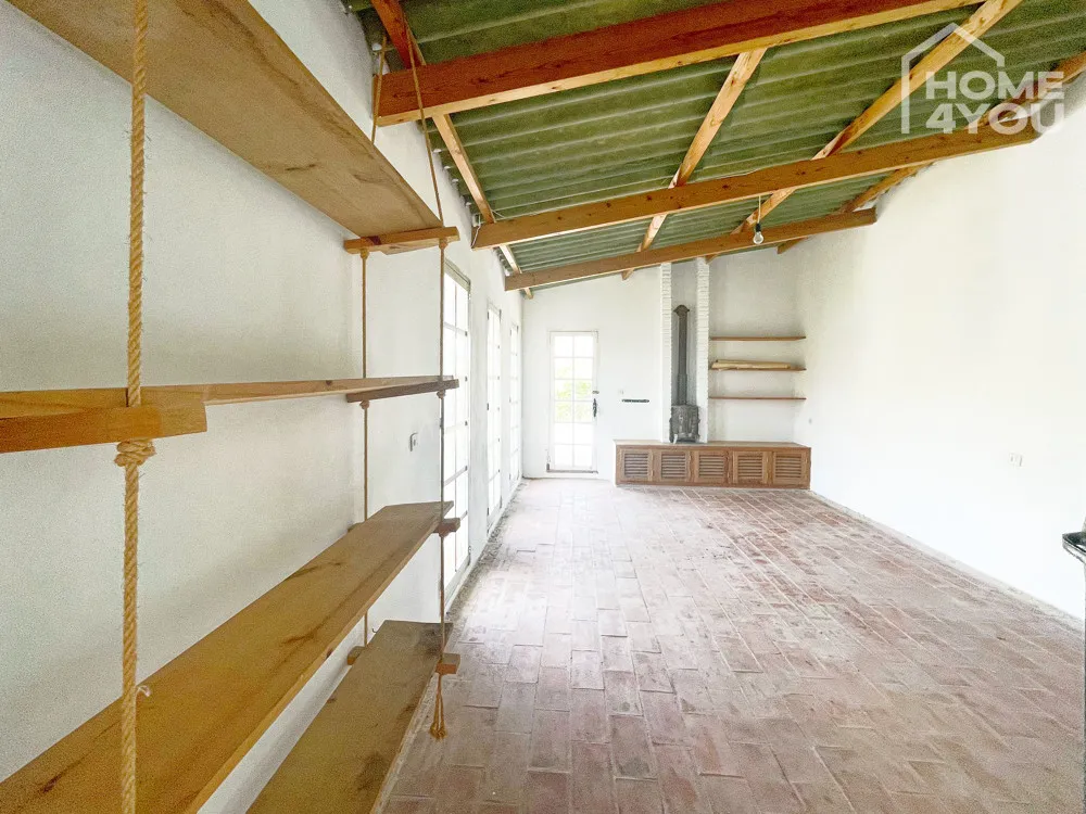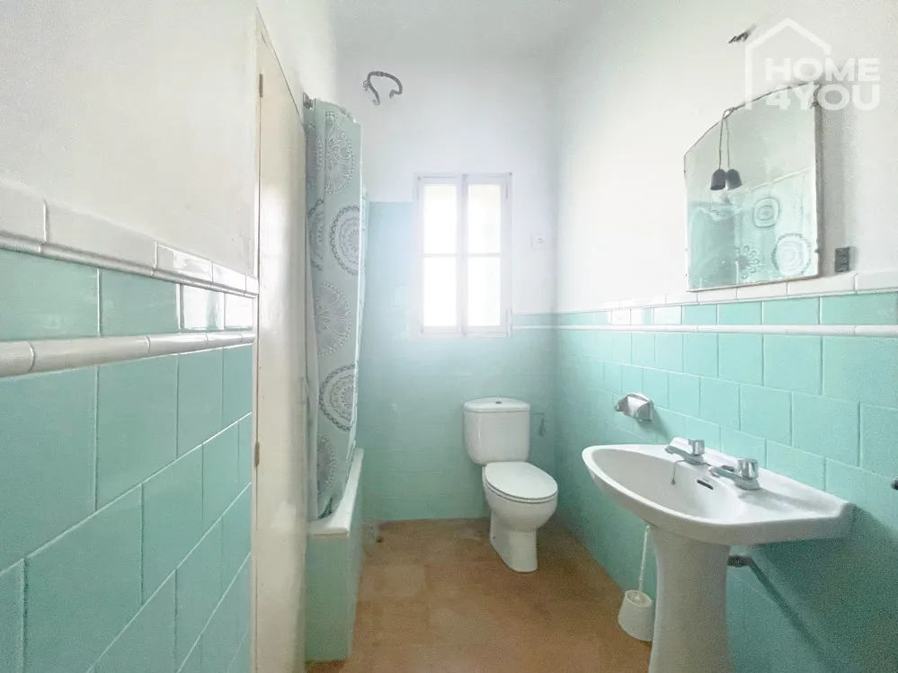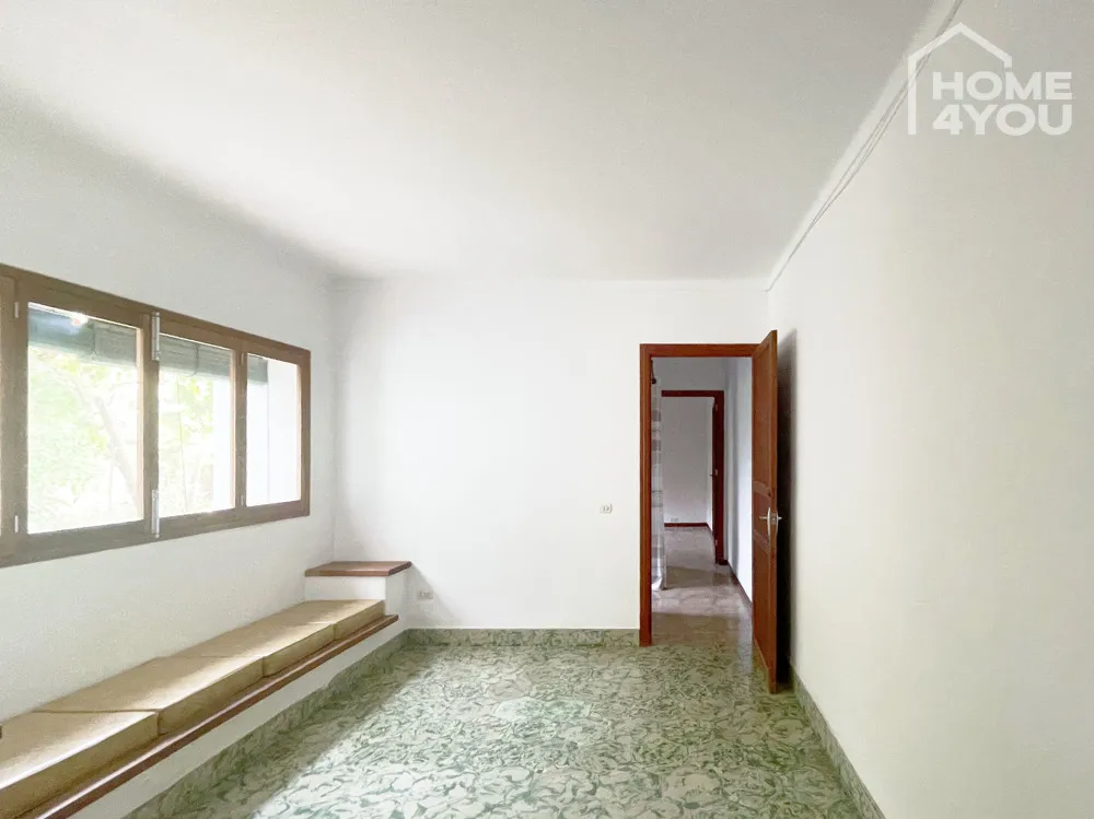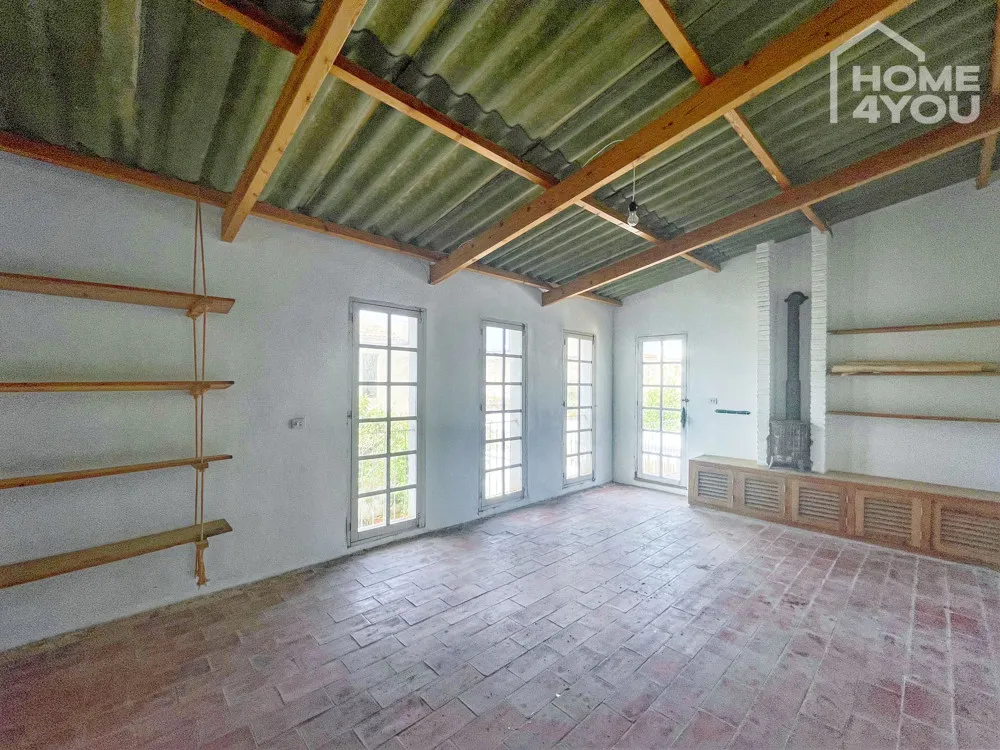 Nebenan liegt ein heller Raum, welcher als Wohnbereich dient. Von dem aus kommen Sie problemlos zum kühlen Innenhof, einem Badezimmer mit anschließendem Schlafzimmer sowie zur Küche mit Zugang zur Garage.
