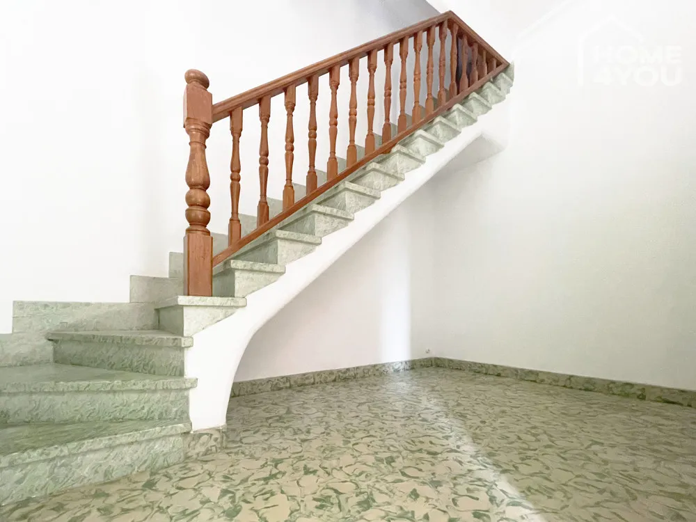 Beim Betreten des Gebäudes durch die gut erhaltenen Innentüren spüren Sie direkt den Charme der hohen Decken und mediterranen Bodenbeläge.