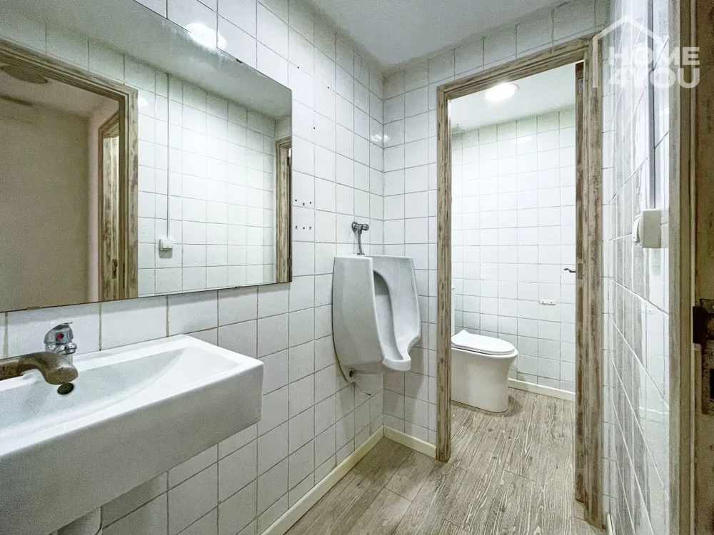 Eine Damen-/ und eine separate Herrentoilette mit zusätzlichem Urinal, sind ebenso vorhanden. Genug Staumöglichkeit bieten der Lagerraum sowie die anliegende Terrasse.