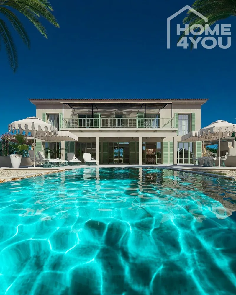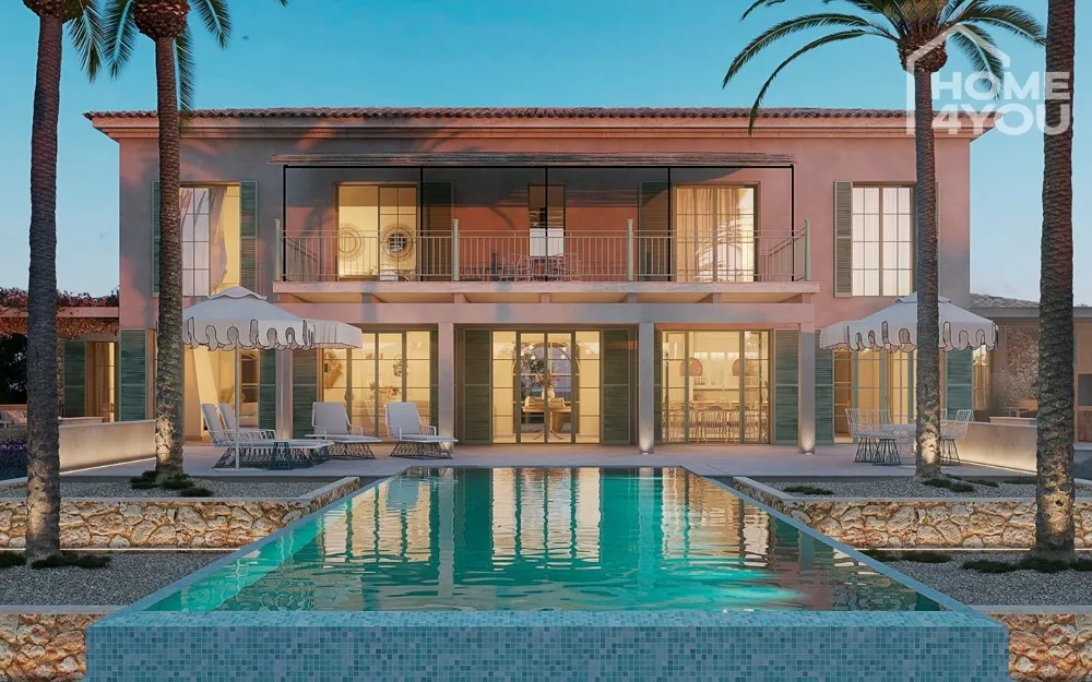 Luxus-Finca in ruhiger Top-Lage mit Meerblick, 387m2, Infinitypool, Sauna, Kamin, Aufzug, 5SZ, 5BZ.