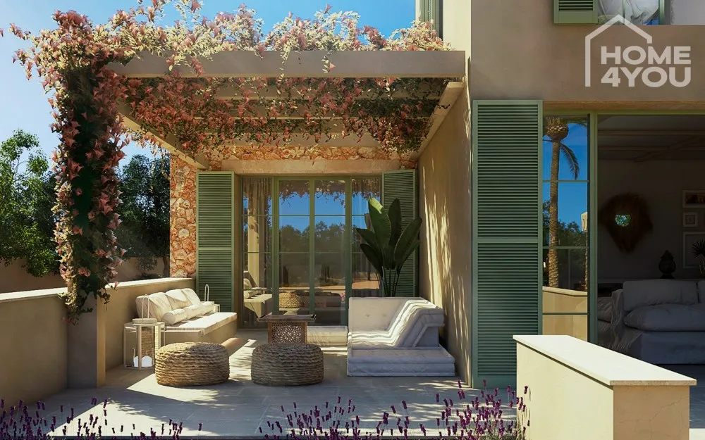 Beide Schlafzimmer haben Zugang zu einer eigenen Terrasse mit Pergola, wo Sie Ihrem eigenen Ruhetempel schaffen können.
