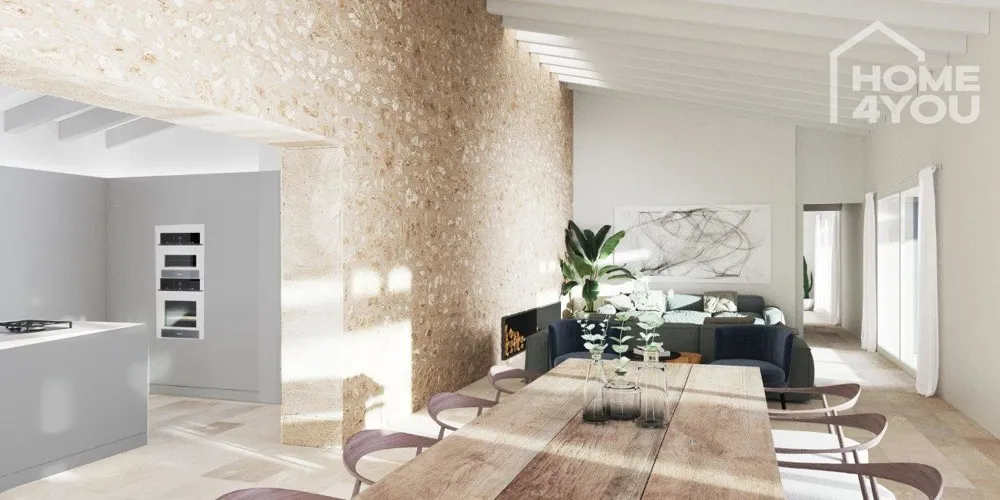 Die Wasserversorgung erfolgt über einen eigenen Brunnen. Das Haus ist mit mallorquinischen Bruchsteinen verziert und bildet zusammen mit der überdachten Terasse, dem Pool und der Seitenabtrennung eine windgeschützte Wohlfühloase, die keine Wünsche offen lässt.