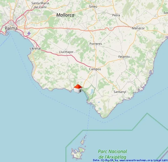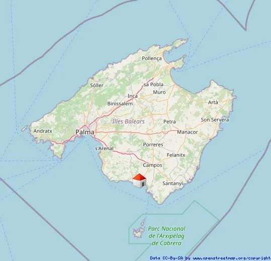 Letztgenannte ist bekannt für den Traumstrand "Es Trenc" und ist nur etwa 10 km entfernt und ist damit bequem in rund 15 Minuten erreichbar.