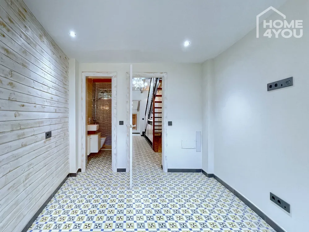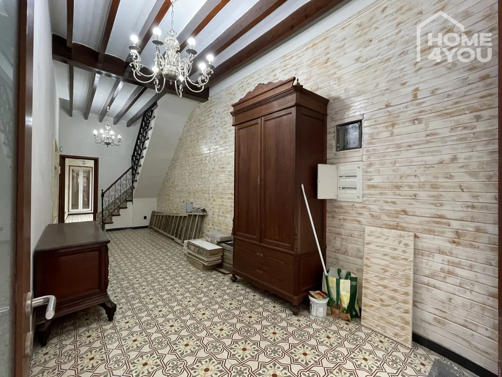 Sie betreten Ihr neues Zuhause und gelangen direkt in den großzügigen Wohn-Eingangsbereich mit Treppenhaus. Nebenan befindet sich der geräumige Essbereich sowie die neue Küche und der Innenhof mit HWR und Badezimmer. Über eine Treppe im Essbereich gelangt man in einen unterkellerten Lagerraum, der sich wunderbar als Wein-Bodega anbietet und in dem man unter Freunden die herrlichsten Weine Mallorcas genießen kann.