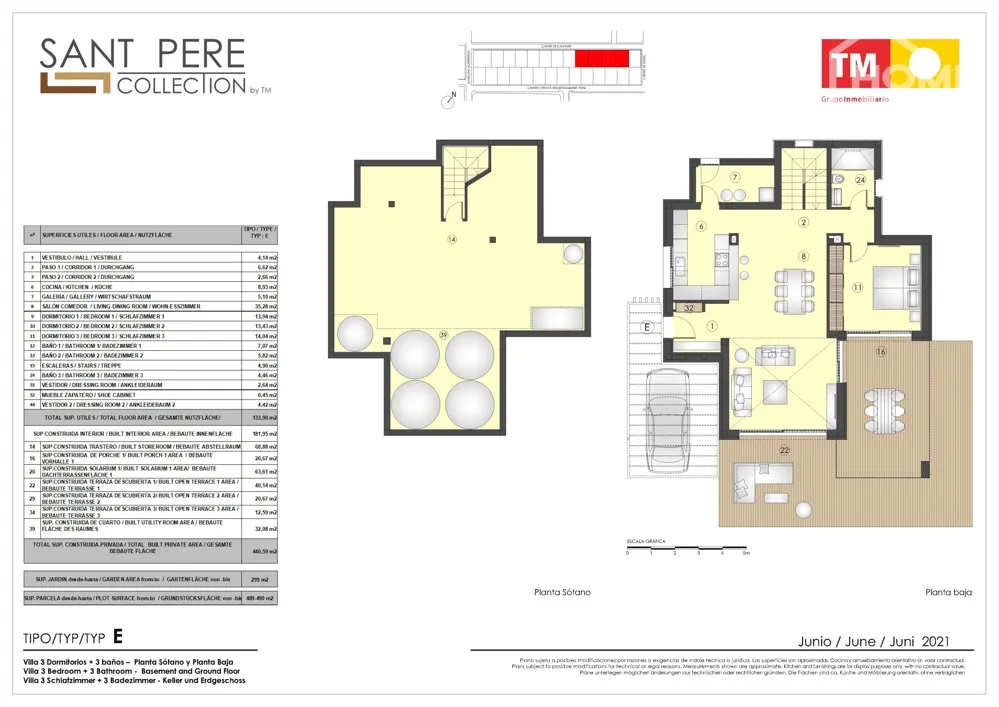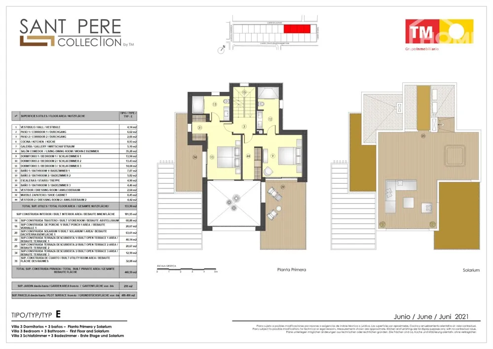 Jede Immobilie verfügt über ein eigenes Grundstück mit separatem Zugang, Garten mit automatischer Tropfbewässerung, Swimmingpool, Garage und Sonnenterrasse in der zweiten Etage.