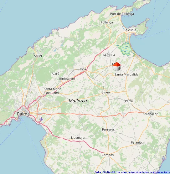 Ganz in der Nähe liegen die ländlichen Orte Llubi, Santa Margalida, Sa Pobla und Buger. Das Küstenresort Can Picafort und der ruhigere Strandort Son Serra del Marina lassen sich ebenfalls schnell erreichen. Und die nächstgelegene große Stadt ist das für die Herstellung von Lederwaren berühmte Inca.