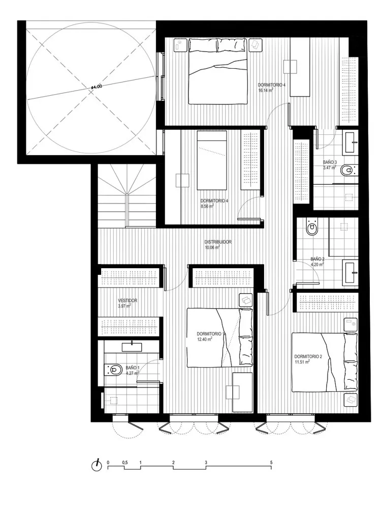 Hier befinden sich 2 Masterbedrooms „en Suite“ und begehbaren Kleiderschrank und 2 weitere Schlafzimmer. Insgesamt sind auf der Etage 3 luxuriöse Badezimmer mit Regen Dusche.