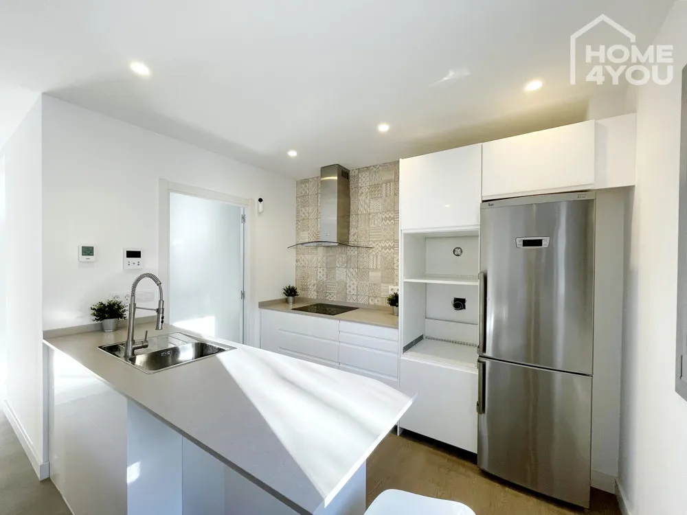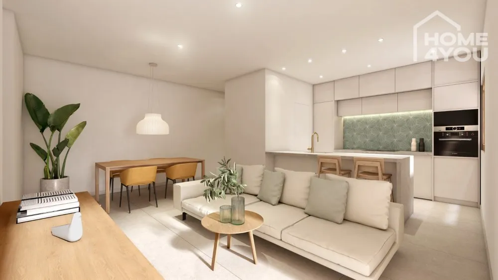In dem großen Wohnzimmer ist ausreichend Platz für eine gemütliche Sitzecke, die bereits vollständig ausgestattete & moderne Küche und den Essbereich.