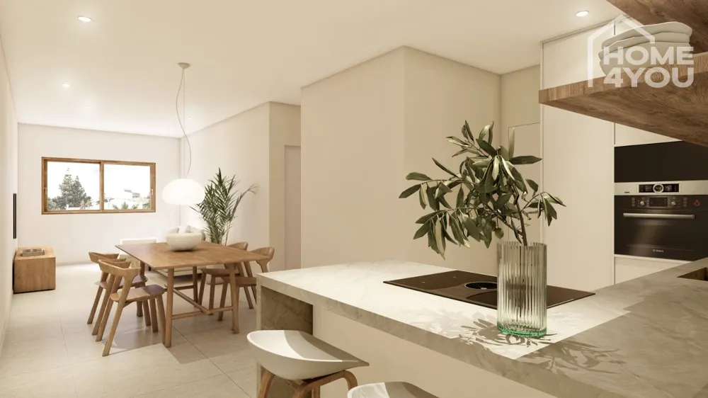 In dem großen Wohnzimmer ist ausreichend Platz für eine gemütliche Sitzecke, die bereits vollständig ausgestattete & moderne Küche und den Essbereich.