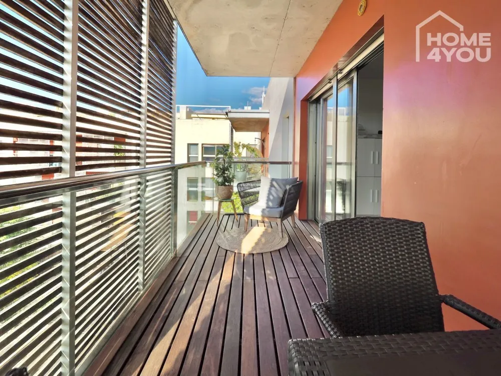Wenn Sie Ihr neues Zuhause betreten, gelangen Sie in den großen Eingangsbereich. Auf der linken Seite befindet sich das schöne Wohn/Esszimmer mit einem geräumigen Balkon. Dieser ist mit einer Echtholz-Elementen ausgestattet, diese dienen als Sonnenblende und als Sichtschutz.
