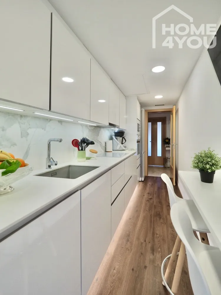 Die moderne Küche mit Marmoroptik ist mit neuen Küchengeräten ausgestattet, hier können Sie für sich und ihre Freunde leckere mallorquinische Gerichte zubereiten.