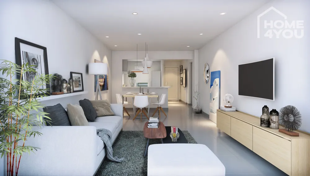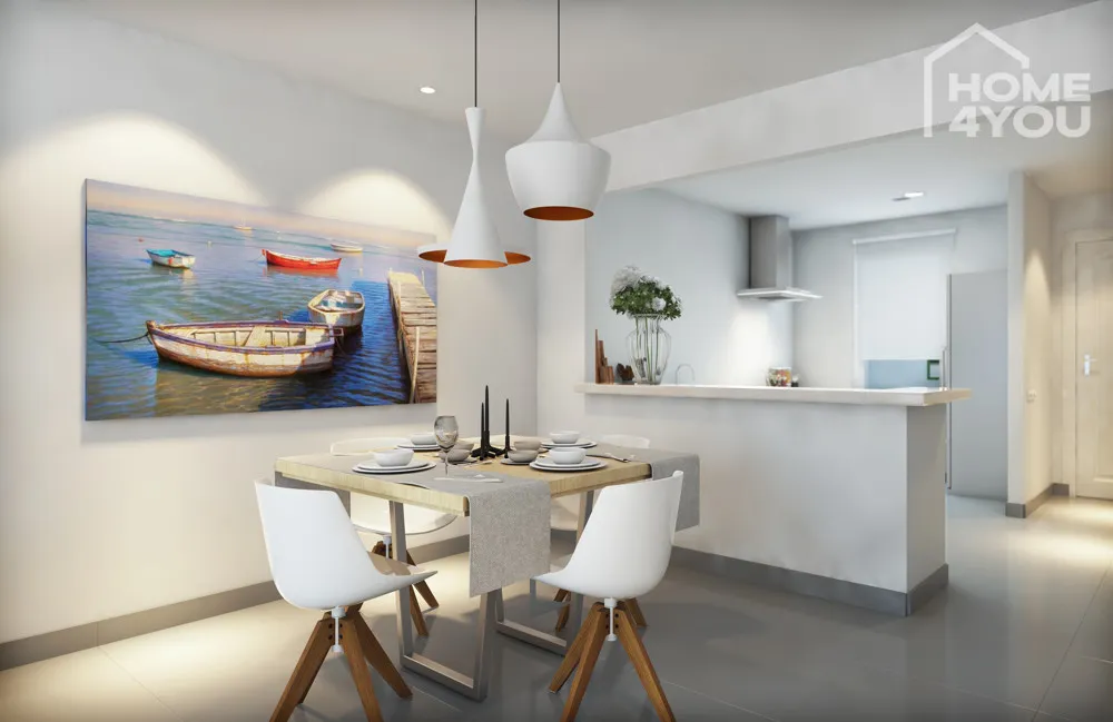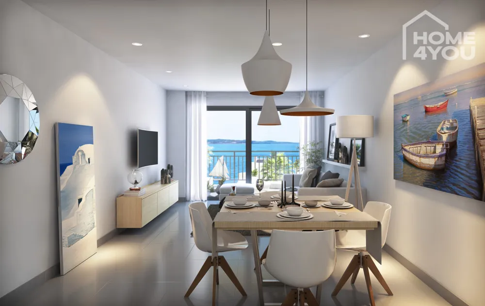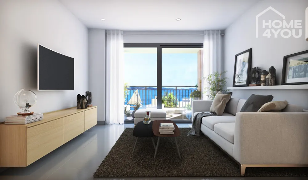 Die Architektur der Wohneinheiten ist ganz auf die privilegierte Lage am Meer abgestimmt und bietet einen spektakulären Blick über die Bucht. Durch die maximale Raumnutzung mit der zum Wohnraum offenen Küche entsteht ein großzügiges, lichtdurchflutetes Ambiente. Vom Wohn-/Essbereich besteht direkter Zugang zur Terrasse, die in den meisten Fällen einen wunderschönen Blick über die Bucht bietet.