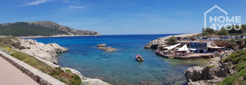 Von der idyllischen Bucht bietet sich ein atemberaubender Blick entlang der mallorquinischen Küste mit feinsandigen, weißen Stränden und kristallklarem Wasser einiger der schönsten Badebuchten wie zum Beispiel Cala Ratjada, Cala Agulla, Cala Moltó oder N’Aladern, an denen Sie verschiedene Wassersportangebote wie beispielsweise Windsurfen, Katamaransegeln, und Kayaking nutzen können.