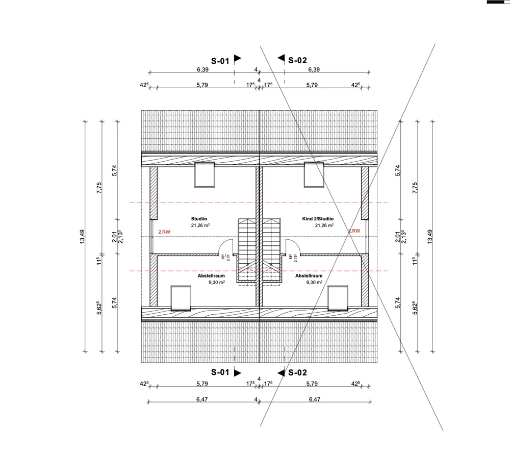 Option: Das Dachstudio bietet ausreichend Fläche für einen separaten Elternbereich. Die Installation eines zweiten Duschbads ist nach Absprache umsetzbar.